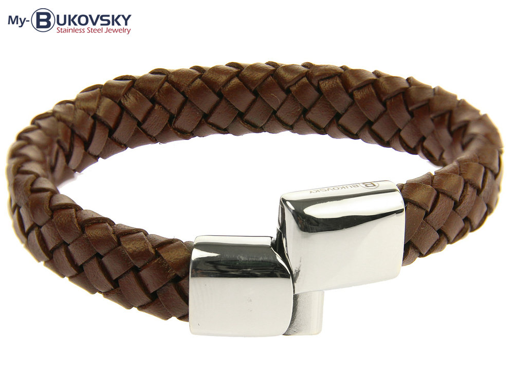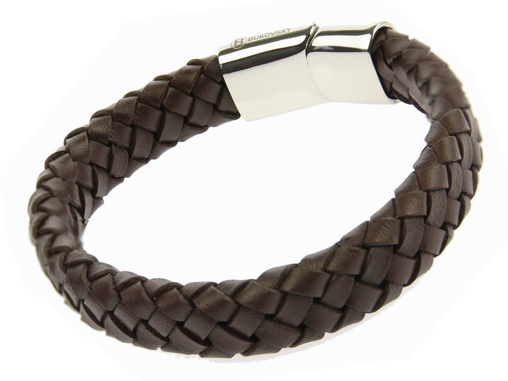 De subtiele en stijlvolle gevlochten leren Bukovsky armband "SL4920" donkerbruin. Met een gepolijste stalen sluiting.