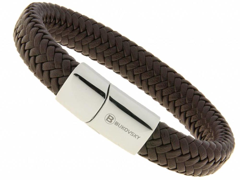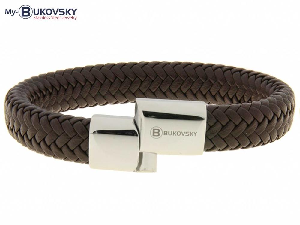 De stoere en toch stijlvolle gevlochten leren Bukovsky armband "SL6550" donkerbruin. Met een gepolijste stalen sluiting.