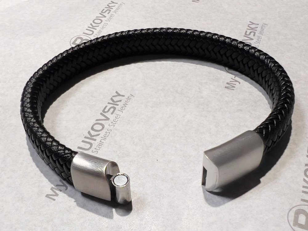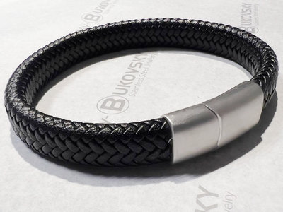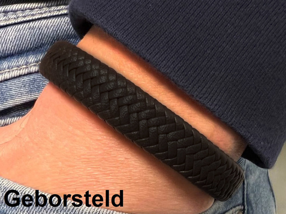 Kom goed voor de dag met deze gevlochten armband van hoogwaardig kunstleder in de kleur zwart met een zilverkleurige geborstelde stalen sluiting. Deze luxe en insteeksluiting heeft magneetjes waardoor deze zeer goed gesloten blijft. De armband is erg goed te combineren met de andere Bukovsky heren armbanden.