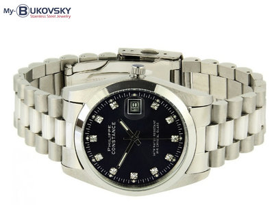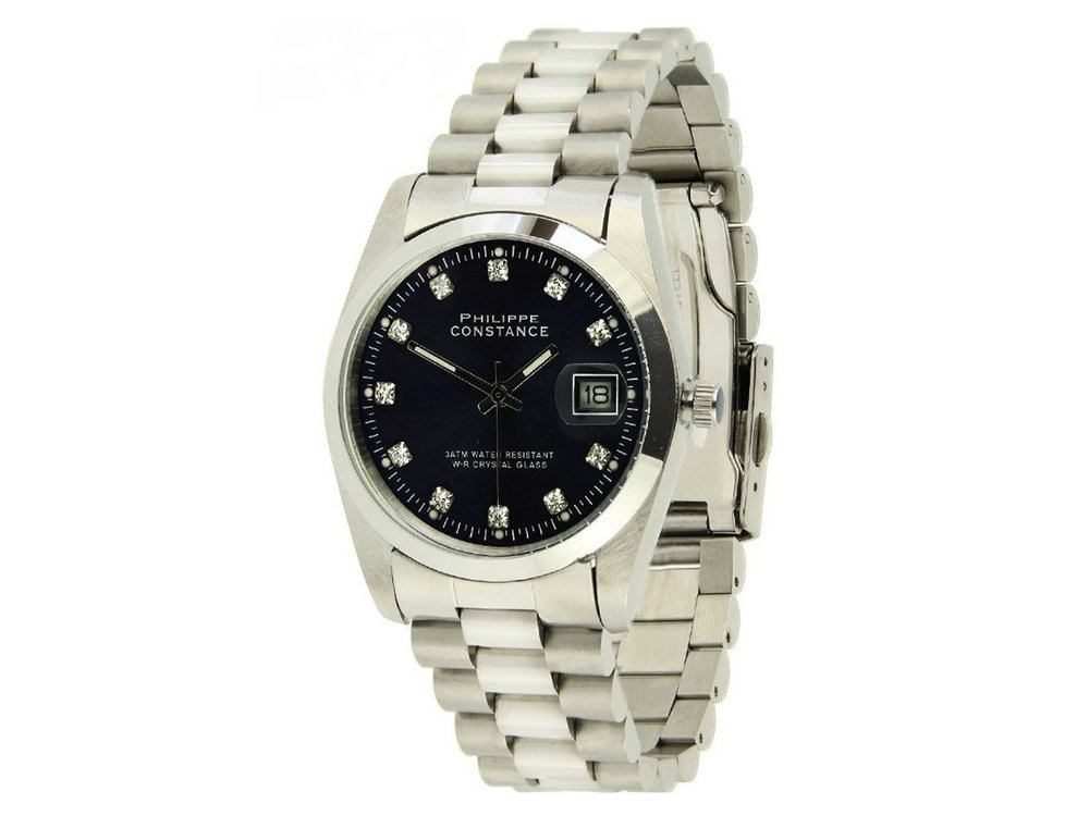 NU 30% KORTING - Philippe Constance Dameshorloge - 4710 Large - Staal - Zilver - Zwart - Strass - Datumaanduiding - Gratis Verzending