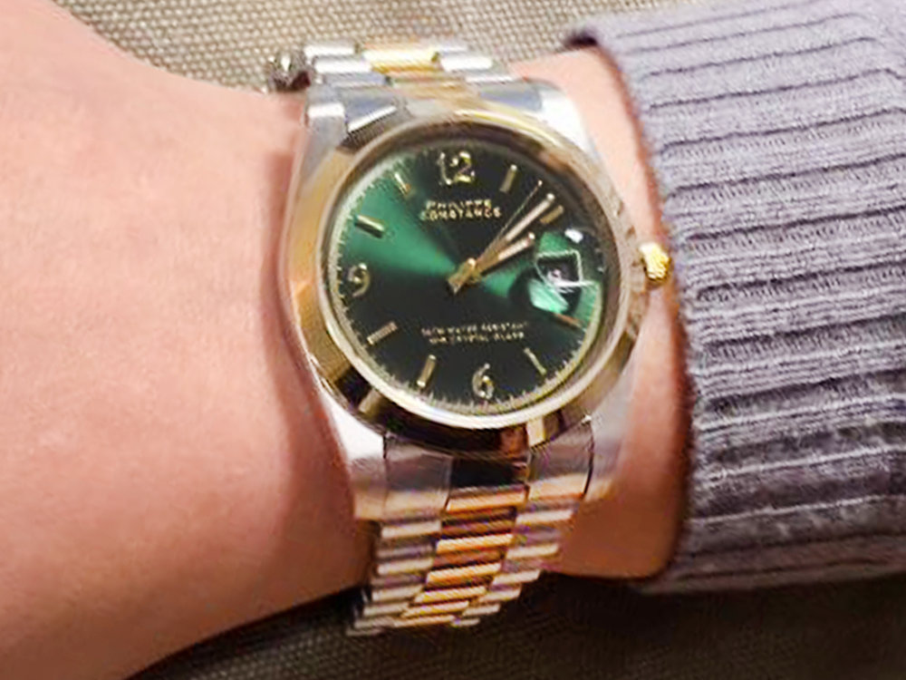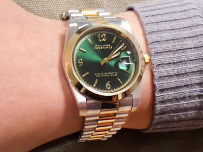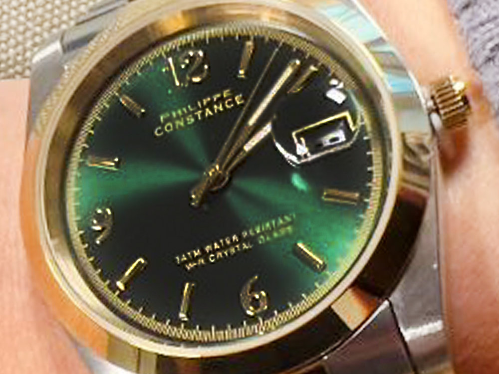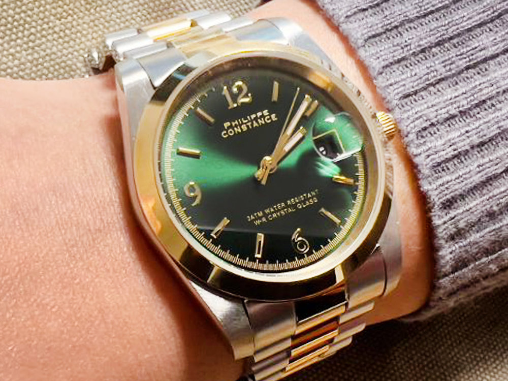 NU 30% KORTING - Philippe Constance Stalen Dameshorloge - 5945 Large -Bicolor - Zilver - Goud - Groene Wijzerplaat - Datumaanduiding - Gratis Verzending