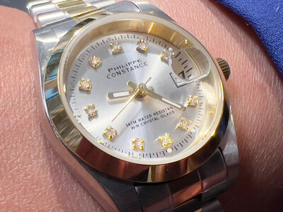Philippe Constance Stalen Dameshorloge - 6285 Small - Bicolor - Goud - Zilver - Strass - Schakelband - Datumaanduiding