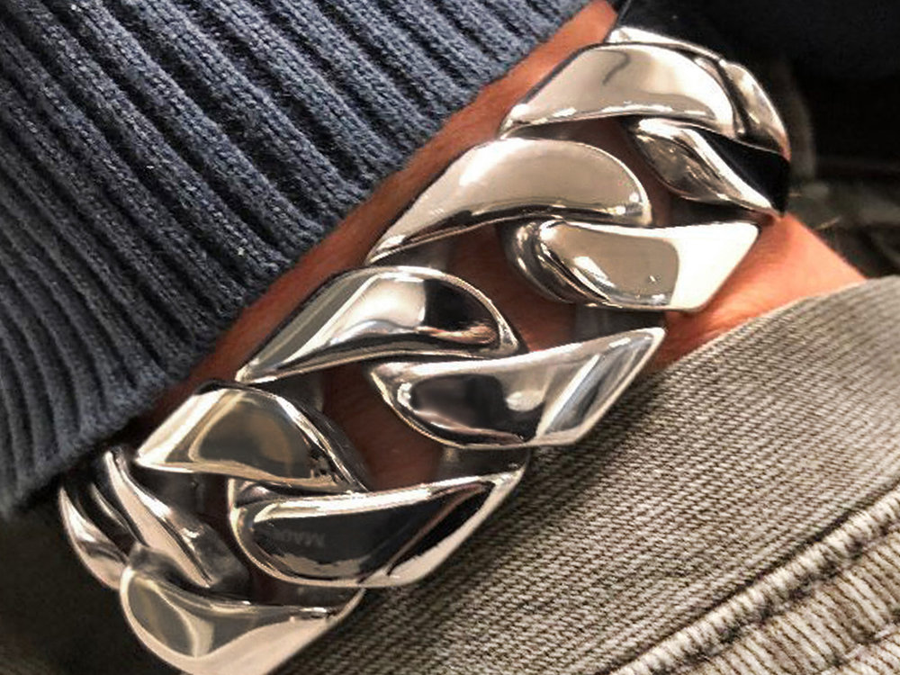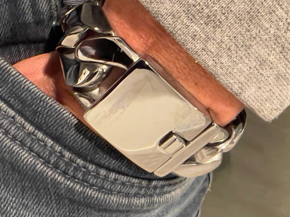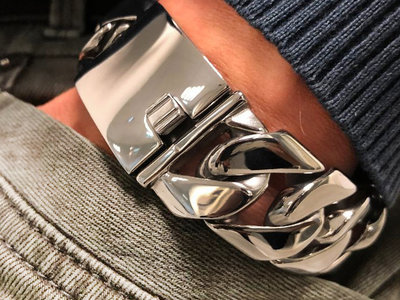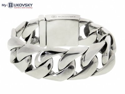 De stalen Bukovsky heren schakelarmband "FORCE" gepolijst.