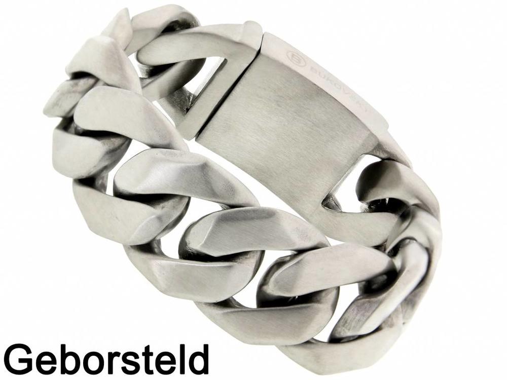 Stoer met een krachtig design. Opvallend maar zeker niet te overheersend. De stoere en geborstelde heren armband Omnia met vrij grove schakels is een absolute eyecatcher. De schakelarmband kenmerkt zich door een vrij gesloten en dikke schakel structuur en heeft een luxe en sterke insteek/plaatsluiting, ook wel een baksluiting genoemd. (Schuif en klik)