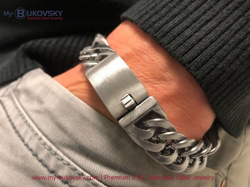 De stalen Bukovsky heren armband "PRESTIGE SMALL" geborsteld.
