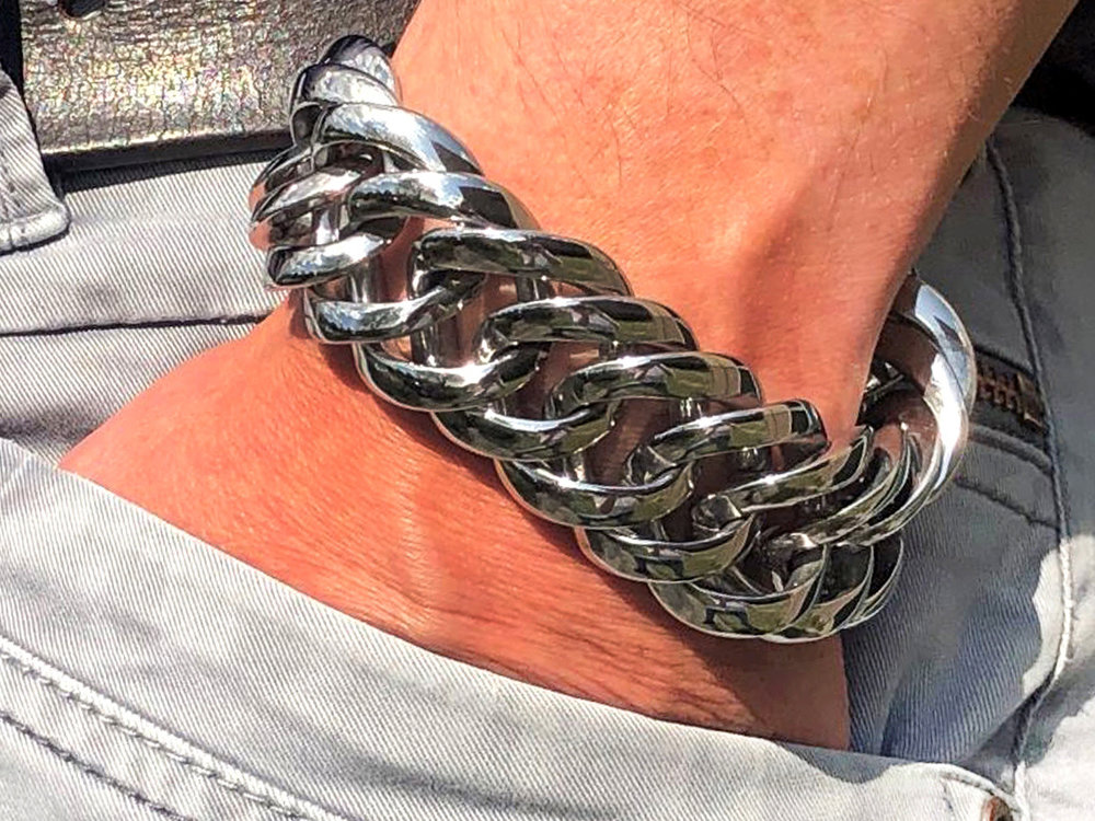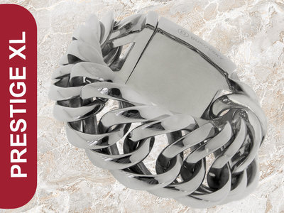 De stalen Bukovsky heren schakelarmband "PRESTIGE XL" gepolijst.