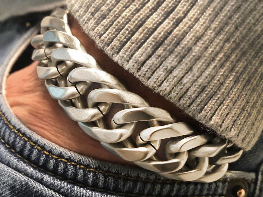 De geborstelde stalen armband kenmerkt zich door een vrij gesloten schakel structuur en heeft een luxe en sterke insteek/plaatsluiting, ook wel een baksluiting genoemd. (Schuif en klik) De massief roestvrij stalen armband is één van onze top 5 bestsellers is en uitstekend te combineren met bijvoorbeeld de leren armbanden uit de Bukovsky collectie.